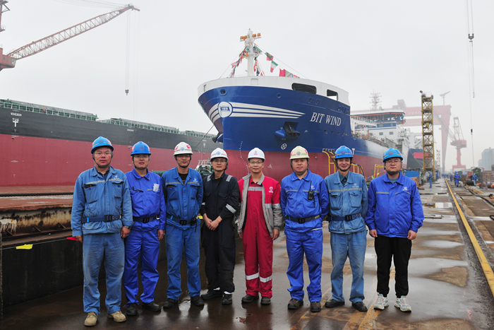 上海港祿航運有限公司總經理韓治東先生親臨現場,與中國船級社項目驗船師、船東現場監(jiān)造組等一起見證新船順利出塢,我集團副總經理張濤先生以及生產管理部相關領導和工作人員現場陪同。