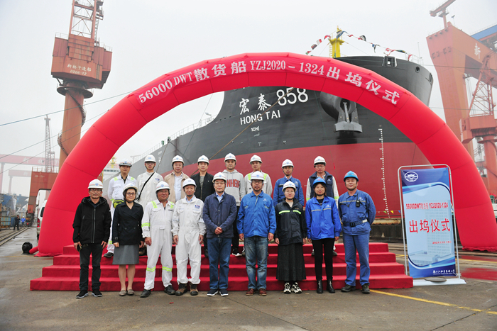 11月5日,新揚子造船為上海港祿建造的第二艘56000DWT散貨船順利出塢。