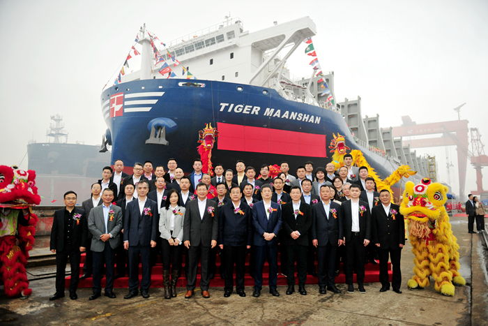 11月5日,700箱級罐箱甲板船“TIGER MAANSHAN”輪順利出塢。來自馬鞍山市市政府、馬鞍山市交通局、馬鞍山市投資促進中心、鄭蒲港新區(qū)、馬鞍山綜合保稅區(qū)、安徽省港口運營集團、馬來西亞國家石油公司、中集安瑞科南通中集能源裝備、光大銀行馬鞍山分行、馬來亞銀行、老虎集團、老虎燃氣、中國船級社(CCS)、上海金融與發(fā)展研究院等單位的領導和嘉賓出席了出塢儀式。我集團名譽董事長任元林、董事長任樂天、副總經理杜成忠等陪同見證出塢。