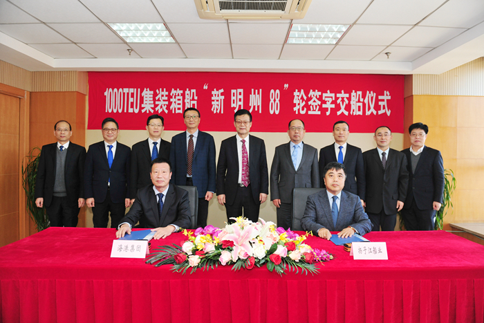 11月22日下午,我集團為浙江海港集團、寧波遠洋建造的首制1000TEU集裝箱船“新明州88”輪命名交付。