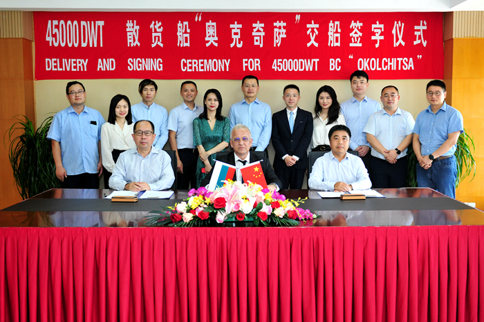 當(dāng)日下午,在各方代表的共同見(jiàn)證下,船東公司新造船經(jīng)理Dimitar Tonev先生,我集團(tuán)副總經(jīng)理杜成忠先生、副總經(jīng)理張濤先生分別代表雙方簽署交船文件,NAVIBULGAR 45000DWT散貨船“OKOLCHITSA”輪順利交付。“OKOLCHITSA”輪計(jì)劃將于19日上午開(kāi)航,前往韓國(guó)接收第一批貨物。隨著“OKOLCHITSA”輪的交付,我公司為保加利亞船東NAVIBULGAR建造的六艘45000DWT散貨船項(xiàng)目完美收官。本項(xiàng)目由中國(guó)出口信用保險(xiǎn)公司提供出口信用擔(dān)保,中國(guó)進(jìn)出口銀行提供融資支持,兩方為項(xiàng)目順利推進(jìn)發(fā)揮了重要作用。