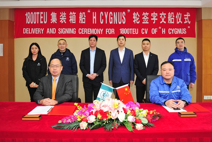 1月28日上午8時18分,揚子長博造船為華元航運公司建造的首制1800TEU集裝箱船“H CYGNUS”輪順利交付。