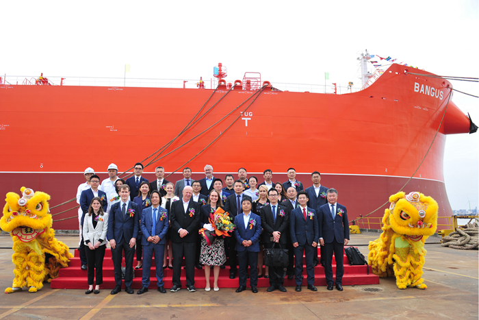 命名人白思娜女士將新船命名為“BANGUS”輪她說,航運的未來是綠色并向著環(huán)保和友好的綜合解決方案,在貴廠建造的化學(xué)品組合船就是滿足了這樣一個方案。作為新穎船舶,他們提供了低碳運輸,并為綠色未來以及倡導(dǎo)清潔、綠色海洋作出了重要貢獻。命名人白思娜女士成功為新船敲擊香檳,拉響汽笛,并祈福新船在未來的航程中:順風(fēng) 順水 順人意;好年 好景 好前程。