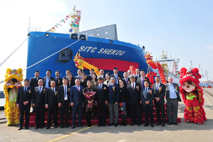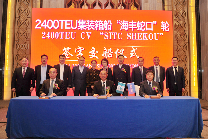 當(dāng)日,在各方代表的共同見證下,海豐航運集團(tuán)副總裁肖森元先生,我集團(tuán)副總經(jīng)理杜成忠先生,集團(tuán)副總經(jīng)理張濤先生分別代表各方簽署交船文件,“SITC SHEKOU”(海豐蛇口)輪順利交付。至此,我集團(tuán)為海豐國際建造的該批次6艘2400TEU集裝箱船項目完美收官!