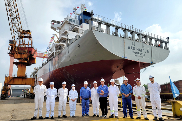 在揚子長博重啟造船一周年之際,我們欣喜地看到,廠區(qū)逐步達產(chǎn)創(chuàng)效。一年來,面對緊張的生產(chǎn)周期、面對防疫安全重重壓力,揚子長博全體員工精誠團結(jié)、頑強拼搏,按時完成了一個個關(guān)鍵項目節(jié)點。截止目前,該廠區(qū)已完工交付兩艘1800TEU集裝箱船,第三艘1800TEU集裝箱船即將試航歸來,計劃本月17日命名。舾裝碼頭剛下水的一艘新船正在緊鑼密鼓地調(diào)試中。