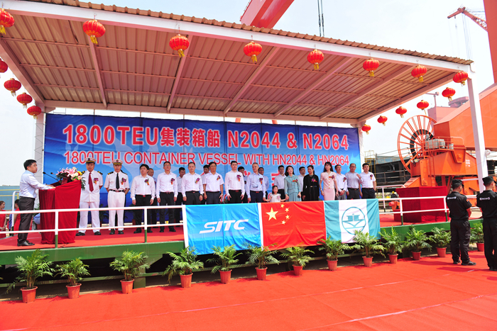 8月29日上午,我集團新?lián)P子造船為海豐國際在我司建造的兩艘1800TEU集裝箱姊妹船,舉行了隆重的命名儀式。