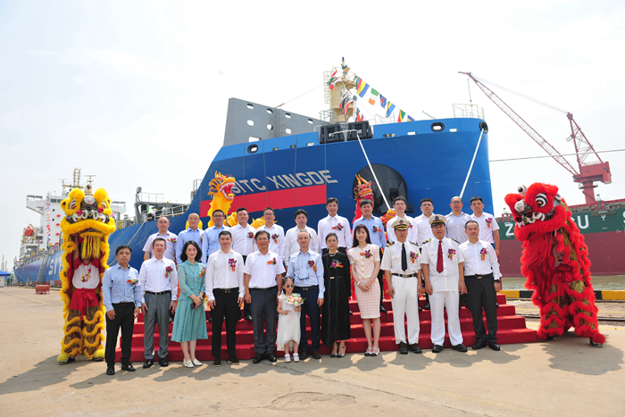 海豐國際董事局副主席兼首席執(zhí)行官楊現(xiàn)祥先生攜夫人林麗美女士,命名人愛麗思生活用品(蘇州)有限公司總經理馬繼偉先生,命名人上海海豐船舶管理中心總經理李瑞民先生,中國船級社(CCS)江陰辦事處主任蔡高先生,日本船級社(NK)上海高級副經理李克杰先生,以及揚子江船業(yè)集團董事長任樂天先生,集團副總經理杜成忠先生,集團副總經理張濤先生,集團副總經理周科偉先生等領導和嘉賓出席了命名儀式。