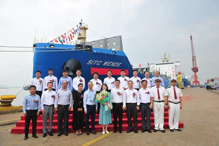 馬繼偉為“SITC XINGDE”輪命名,楊舒瑞為新船砍纜并擲香檳禮;李瑞民為“SITC WENDE”輪命名,殷春燕為新船砍纜并擲香檳禮,祝福新船一帆風順,班班滿載。8月29日,上海海豐船舶管理中心總經理李瑞民先生,我集團副總經理杜成忠先生,副總經理張濤先生分別代表各方簽署“SITC WENDE”輪交船文件。8月30日下午,“SITC WENDE”輪離開新?lián)P子造船碼頭,開啟交付后的首航。
