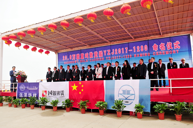 4月23日上午,我集團為國銀租賃建造的第10艘208000DWT散貨船,順利命名交付。命名人左天琦女士,國銀租賃業(yè)務(wù)審批部總經(jīng)理張旭先生,國銀租賃船舶事業(yè)部副總經(jīng)理劉玉貫先生,美國船級社(ABS)華中地區(qū)經(jīng)理宋愛民先生,北港航運上海代表處首席代表陶元穎先生,Howe Robinson董事羅雅潔女士,青島遠洋華林總經(jīng)理劉思成先生,SMC技術(shù)總監(jiān)Steve先生,708所所長助理、民船部主任朱建章先生,以及我集團副總經(jīng)理杜成忠先生、副總經(jīng)理周科偉先生等相關(guān)領(lǐng)導(dǎo)和嘉賓出席了儀式。