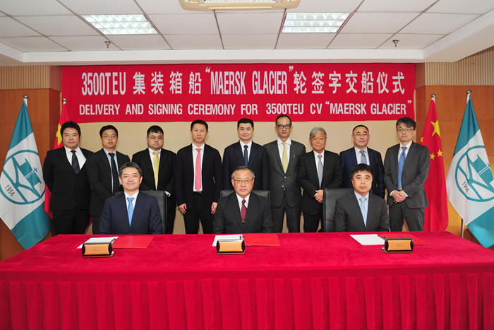 5月31日上午,我集團(tuán)新?lián)P子造船向船東日本LEPTA交付一艘3500TEU集裝箱船“MAERSK GLACIER”輪。在相關(guān)方的共同見(jiàn)證下,船東和船廠代表在新?lián)P子造船會(huì)議室簽署交船文件。