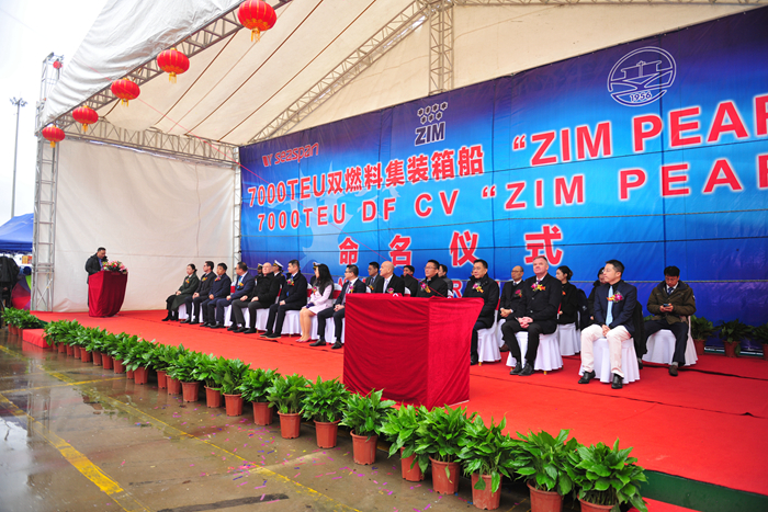 2月21日,我集團(tuán)與SEASPAN、ZIM公司共同為新船舉行了隆重的命名儀式。命名人伍穎嫻女士,SEASPAN公司董事長/總裁兼首席執(zhí)行官陳兵先生,SEASPAN公司首席商務(wù)官李堃先生,ZIM公司總裁兼首席執(zhí)行官Eli Glickman先生,ZIM公司執(zhí)行副總裁兼首席運(yùn)營官David Arbel先生,DNV集團(tuán)高級(jí)副總裁兼大中華區(qū)主席Norbert Kray先生,以及我集團(tuán)董事長任樂天先生、集團(tuán)副總經(jīng)理兼新?lián)P子造船總經(jīng)理杜成忠先生、集團(tuán)副總經(jīng)理周科偉先生、集團(tuán)副總經(jīng)理吉宏飛先生等領(lǐng)導(dǎo)和嘉賓共同出席了命名儀式。