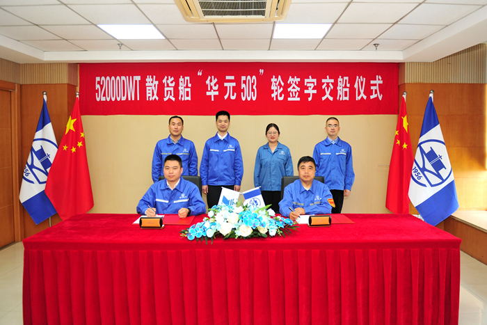 “華元503”輪簽字交船儀式于4月22日上午10時(shí)18分舉行,揚(yáng)子江航運(yùn)中心總經(jīng)理費(fèi)東京先生與我集團(tuán)副總經(jīng)理兼新?lián)P子造船總經(jīng)理杜成忠先生分別代表雙方簽署交船文件。揚(yáng)子江航運(yùn)中心船隊(duì)、集團(tuán)經(jīng)營(yíng)團(tuán)隊(duì)等相關(guān)代表出席見(jiàn)證。依托于揚(yáng)子江船業(yè),揚(yáng)子江航運(yùn)中心規(guī)??焖賶汛?、管理團(tuán)隊(duì)逐步成熟?!叭A元503”輪的投入運(yùn)營(yíng),為揚(yáng)子江航運(yùn)船隊(duì)的運(yùn)營(yíng)和發(fā)展提供了新的支撐,目前中心運(yùn)力規(guī)模已達(dá)到33艘,其中散貨船運(yùn)力為200萬(wàn)載重噸。揚(yáng)子江航運(yùn)中心將持續(xù)踐行低碳、綠色、高效的管理運(yùn)營(yíng)理念,全力為客戶提供更可靠、便捷、經(jīng)濟(jì)的優(yōu)質(zhì)服務(wù)。