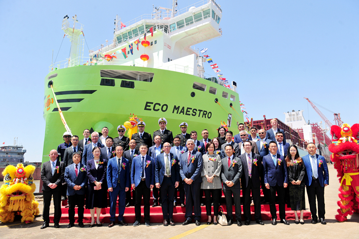 5月16日,我集團(tuán)與X-Press Feeders公司共同為新船舉行了隆重的交船儀式。X-Press Feeders公司首席執(zhí)行官Shmuel Yoskovitz先生、首席運(yùn)營(yíng)官Francis Goh先生、首席商務(wù)官Steffanie Sim女士,DNV船級(jí)社全球副總裁兼中國(guó)技術(shù)中心總經(jīng)理Pettersen Oyvind先生,DNV船級(jí)社中國(guó)北方區(qū)總經(jīng)理晏曉琳女士,中國(guó)船舶及海洋工程設(shè)計(jì)研究院(MARIC)副所長(zhǎng)朱建璋先生,我集團(tuán)董事長(zhǎng)任樂天先生,集團(tuán)副總經(jīng)理兼新?lián)P子造船總經(jīng)理杜成忠先生、集團(tuán)副總經(jīng)理周科偉先生,集團(tuán)副總經(jīng)理吉宏飛先生,以及船東現(xiàn)場(chǎng)監(jiān)造組、船級(jí)社監(jiān)造組、項(xiàng)目合作相關(guān)方、船廠建造代表等領(lǐng)導(dǎo)和嘉賓出席了儀式。