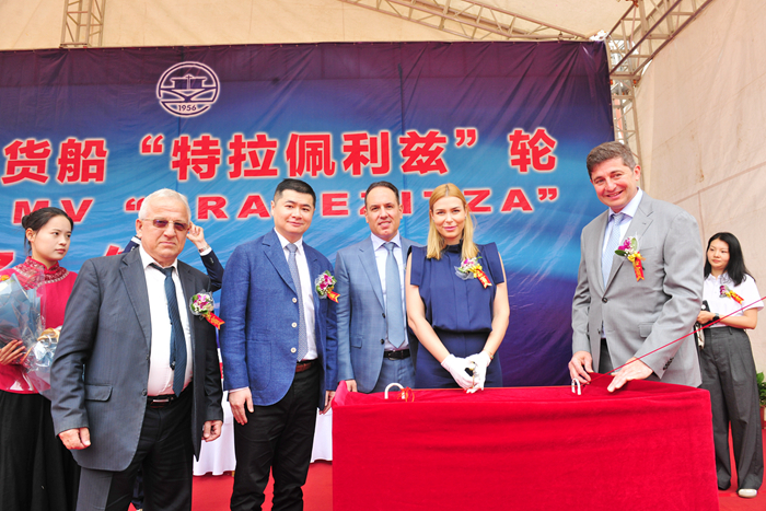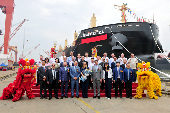 5月30日,我集團(tuán)與NAVIBULGAR船東共同為新船舉行了隆重的命名交船儀式。命名人Dani Domuschieva女士,NAVIBULGAR董事長Georgi Domuschiev先生,NAVIBULGAR執(zhí)行董事Alexander Kalchev先生,DNV船級社江陰站經(jīng)理史勇林先生,克拉克森新造船經(jīng)理朱宏巍先生,我集團(tuán)董事長任樂天先生、集團(tuán)副總經(jīng)理吉宏飛先生,以及船東監(jiān)造組、船檢、船廠相關(guān)人員代表及嘉賓出席了儀式。