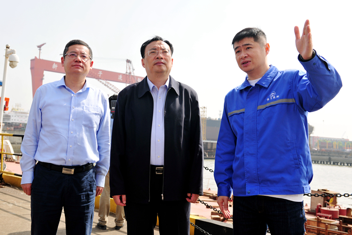 任董陪同張長(zhǎng)平一行現(xiàn)場(chǎng)察看了船舶加工下料、分段拼裝、船塢合攏、舾裝調(diào)試等生產(chǎn)現(xiàn)場(chǎng),匯報(bào)了集團(tuán)2021年第一季度經(jīng)濟(jì)運(yùn)行情況、生產(chǎn)狀況等。張長(zhǎng)平書記表示,靖江造船企業(yè)要發(fā)揮自身優(yōu)勢(shì),努力克服國(guó)際市場(chǎng)環(huán)境惡化和新冠疫情沖擊的雙重影響,全力“保交船、爭(zhēng)訂單、促發(fā)展”,推動(dòng)靖江這個(gè)全國(guó)最大民營(yíng)造船基地、國(guó)家級(jí)船舶出口基地在危機(jī)中破浪前行,實(shí)現(xiàn)逆勢(shì)發(fā)展,助力靖江加快實(shí)現(xiàn)“造船大市”向“造船強(qiáng)市”跨越,推動(dòng)靖江市船舶產(chǎn)業(yè)高質(zhì)量轉(zhuǎn)型升級(jí)。