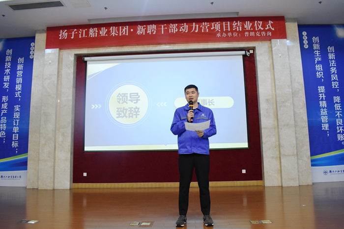集團董事長任樂天為學員們頒發(fā)了結業(yè)證書,他恭喜全體49名學員順利畢業(yè),并指出,本期培訓班的學員都是揚子江船業(yè)未來的中流砥柱,通過半年系統(tǒng)的學習,看到了大家能運用所學的知識武裝自己,能夠做到對外獨擋一面,對內有效溝通,達到了公司舉辦此次培訓課程的目的。任董對學員們的付出表示肯定,同時對新聘干部們也提出了更高的要求,管理干部們要做到“德才兼?zhèn)洹?,首先是德的養(yǎng)成,其次才是才的提升,在平時的生活工作中做到公平、公正、公開,在管理中要敢擔大任、敢拔頭籌,用自己的正能量影響自己的團隊。